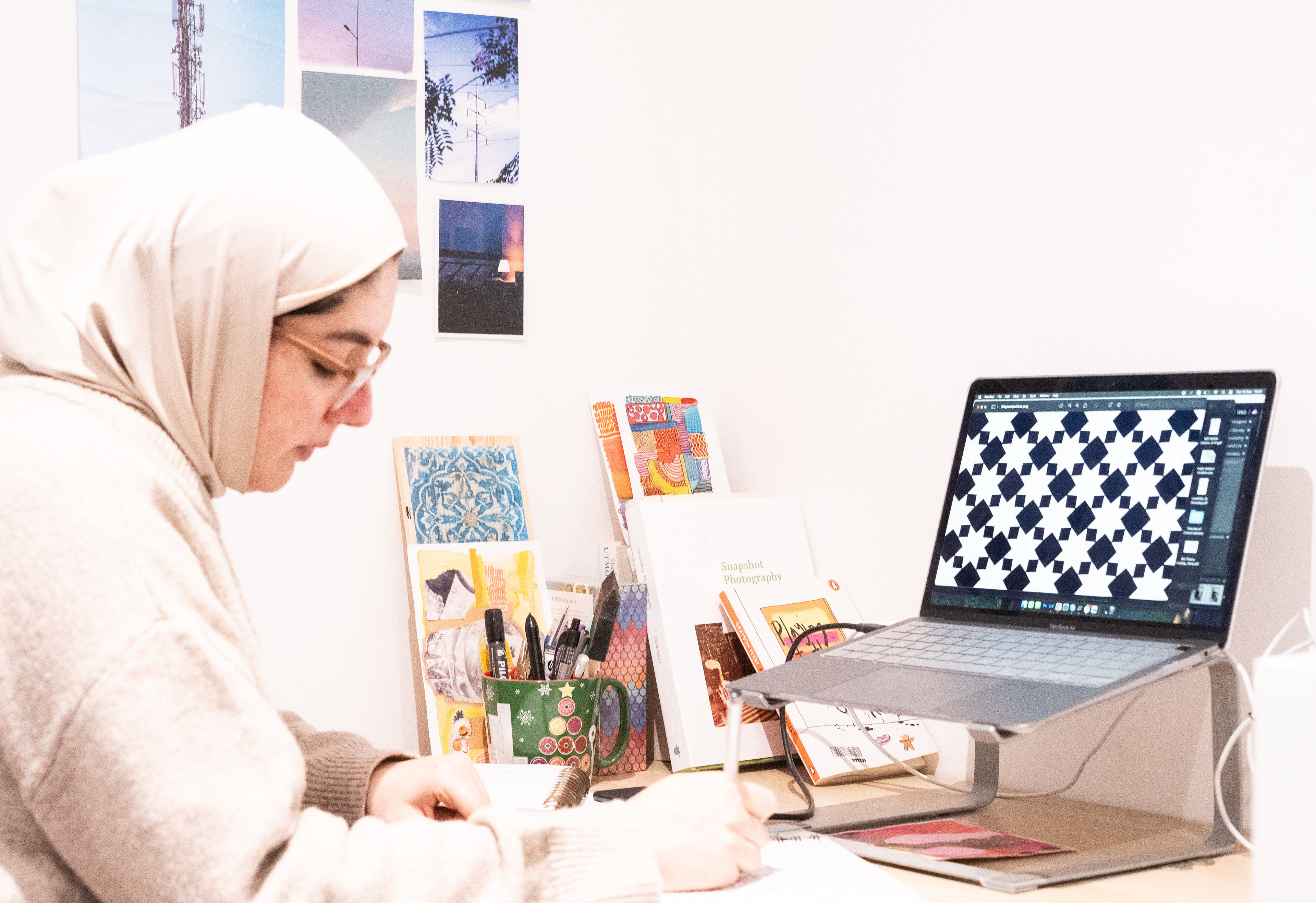 Amina El-Edroos (b. 1989) is a visual artist, photographer and educator working between Islamabad, Pakistan, and London, UK. She earned a BFA in Digital Arts at Beaconhouse National University, Lahore (2013) and an MA in Digital Media from Goldsmiths, University of London (2023). Working primarily in digital media, she makes temporal and spatial representations in video and photography, documentation of the everyday urban and suburban space and most recently, belonging and identity as an immigrant. Her most recent research-based work, 'Janemaz' also looked at digital image making by comparing Islamic geometric principles to the code behind the digital interface as they both unfold from an infinite plane. The intention behind the work is to underscore the co-relation and contrasts between the eastern tradition and western thought and making.