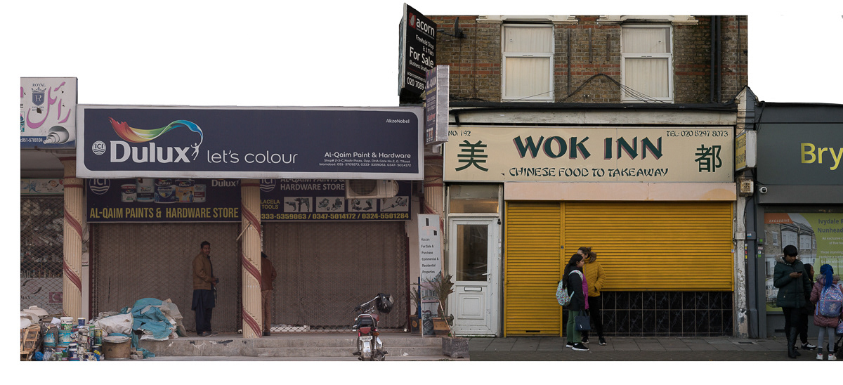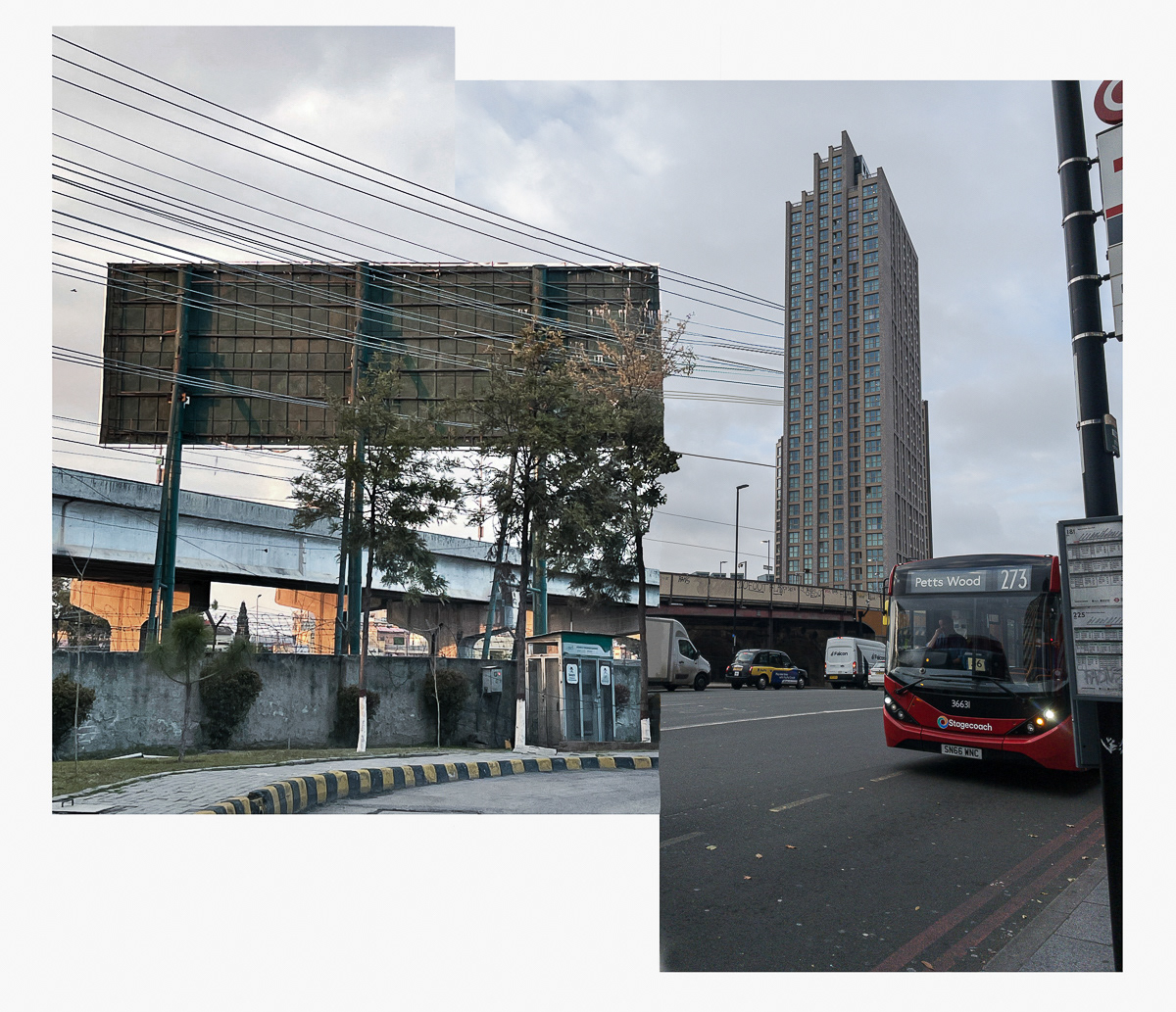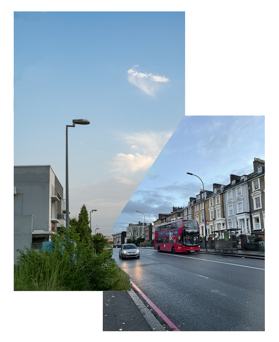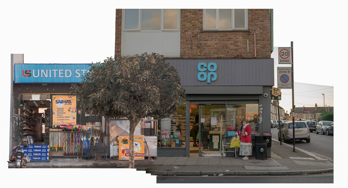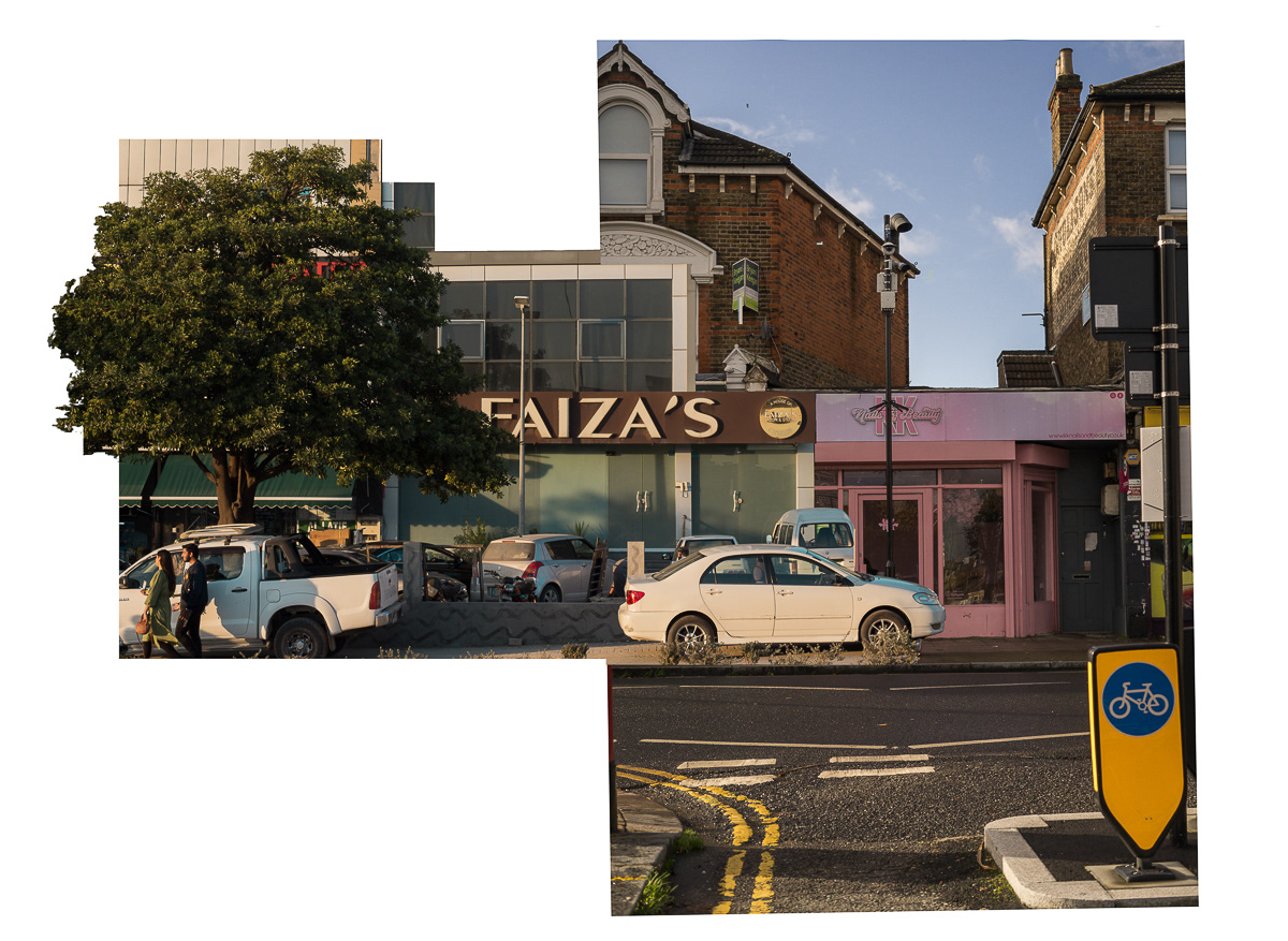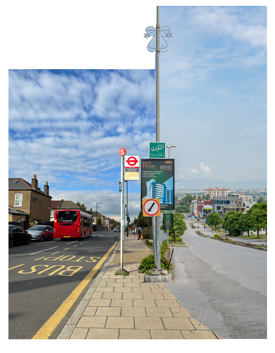 The series photo-based collages intricately fuses practice and critical thought on identity and place, evident in integrated photo collages that beckon both individual scrutiny and collective unity. Each cut and collage choice carries weight, emphasised by the carefully excised, rough-hewn edges that frame without confinement. The urban "grid" is both embraced and challenged, becoming a counter vernacular of montage. This personalised aesthetic stems from engaged image interaction and software nuances, revealing political and ontological layers at the juxtaposed edges. The series metaphorically captures the ongoing migration experience, inviting viewers to engage intimately. The images, simultaneously familiar and surreal, evoke dual worlds, akin to digital interactions or mental wanderings. Collage adeptly explores this theme, augmented by effective image-joining rules.